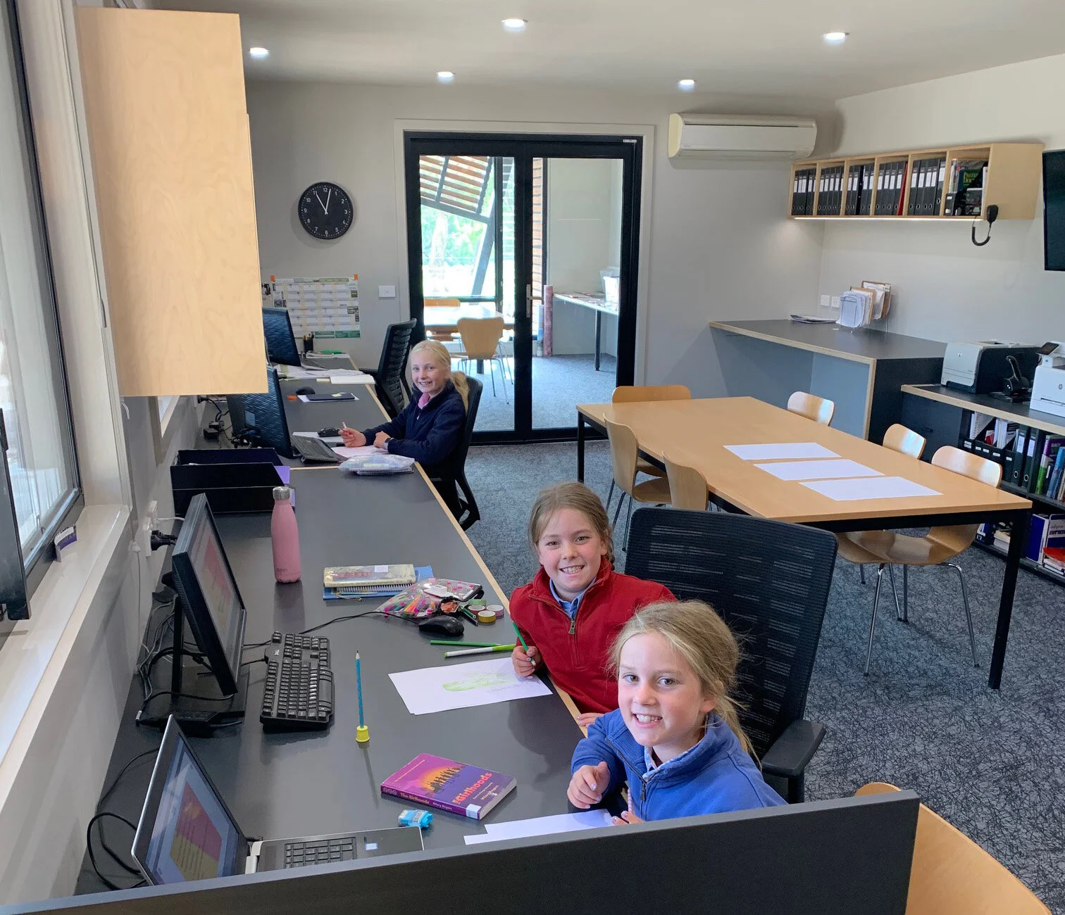 The Avington farm office was converted into a classroom for staff member Nadine Stanton’s daughters Matilda, Ruby and Maggie, so they could complete their home learning program, while Nadine continued to work on the farm while supervising the girls.